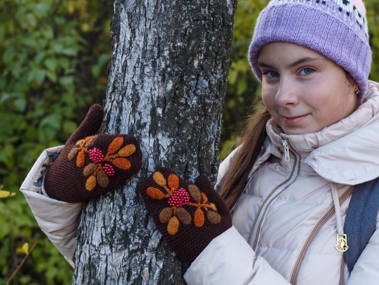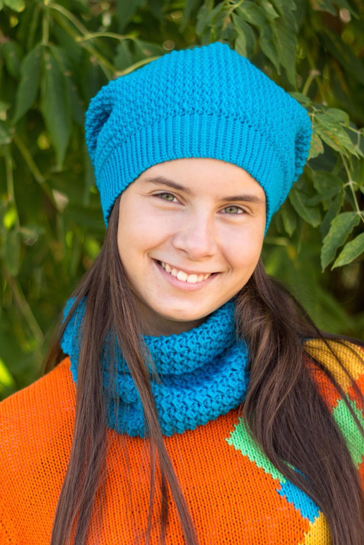 Комплект шапка-снуд. Связала для себя, но в роли модели - доченька)