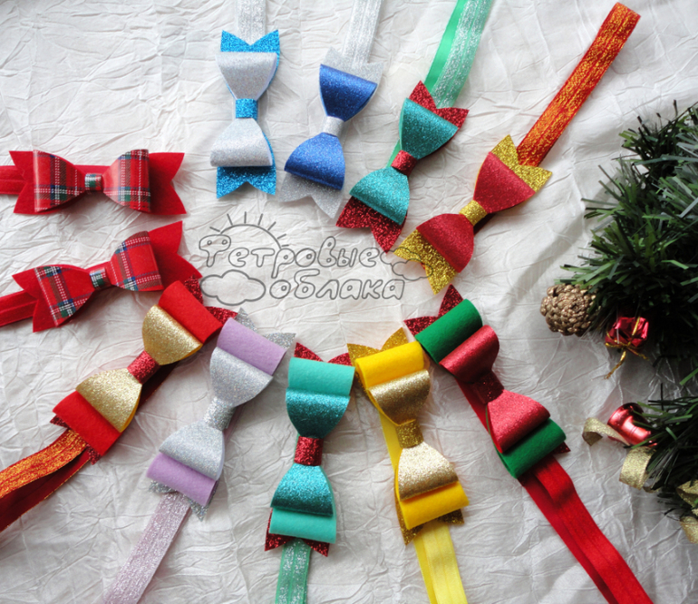 И яркие новогодние бантики из блестящего фетра, для юных красавиц))