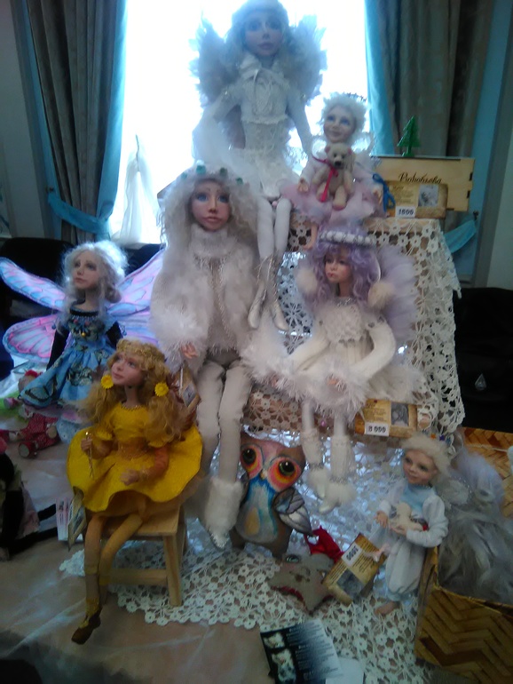 Куклы Светланы Воробьевой из запекаемого пластика и на каркасе. Я прикупила у неё волосы для куклы - натуральную козочку, мягкую-мягкую голубоватого цвета!