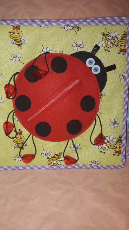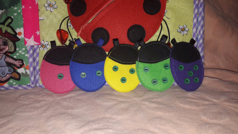 спинка божьей коровки на молнии, а за ней детки, на их спинках счет от 1 до 5...