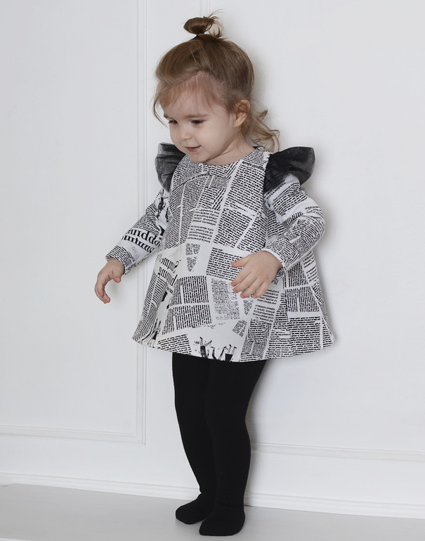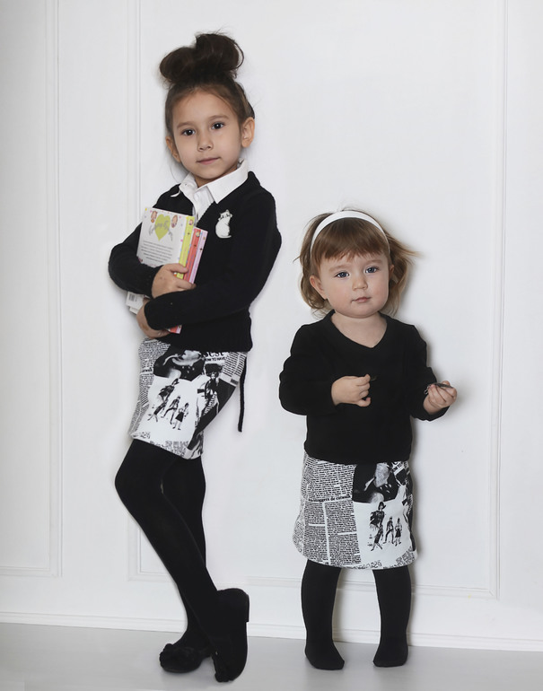 Сшила платье и юбочки из футера с начесом и принтом "газета"