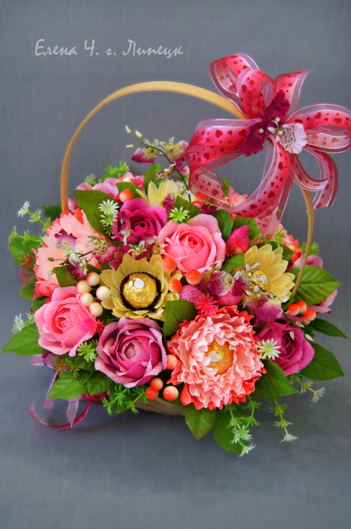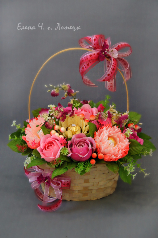 Букеты из конфет. Свитдизайн.Девушка заказала корзинку для бабушки. Похожая уже была, но решила все таки показать. Под катом 4 фото