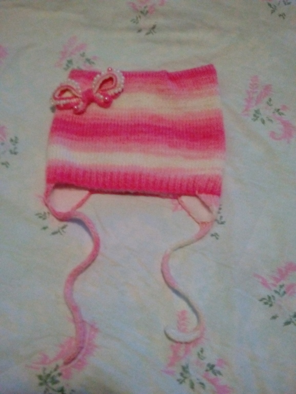 Вязание спицамиВот такая шапочка навязалась для старшей дочки. Нужно было связать быстро и без хитрого рисунка. Кошачьи ушки - пожелание дочки. Шапка на флисовой подкладке. Дочь довольна.
