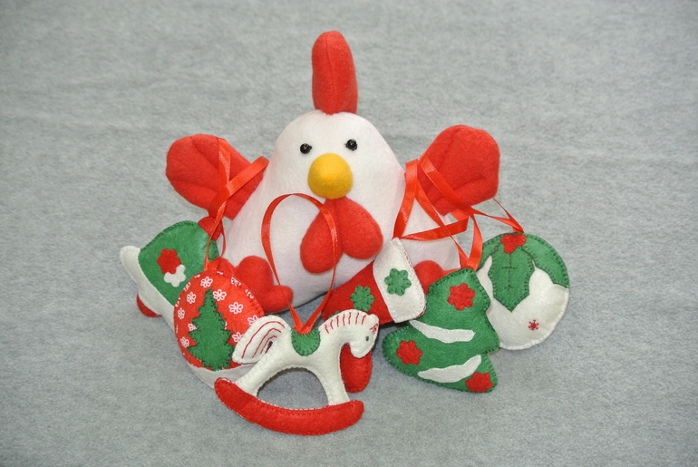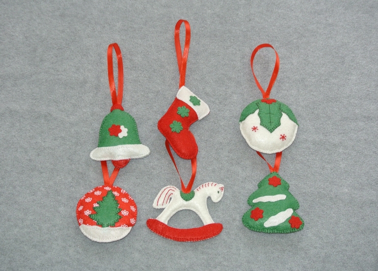 Никаких МК не искала вообще - посмотрела в инете картинки фетровых елочных игрушек, нарисовала как рука понесла и села шить). Надо просто придумать, что именно хочется. У меня есть синий набор (синий и голубой фетр с рисунком, сн\иний и голубой без рисунка), варежки-кармашки и вот рождественский.