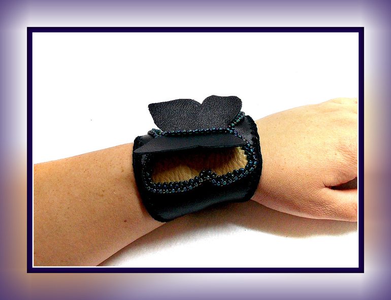 Изделия из кожиЕще раз попробовала сделать браслет из кожи. Вот то, что у меня получилось... Браслет сделан из двух цветов кожи.