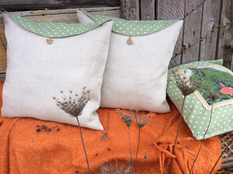 Больше похожи на конвертики:)) я не очень люблю за правлять наволочки, а так очень удобно и можно если рисунок надоест, повернуть и будут подушки "другие" более сдержанные и стильные.