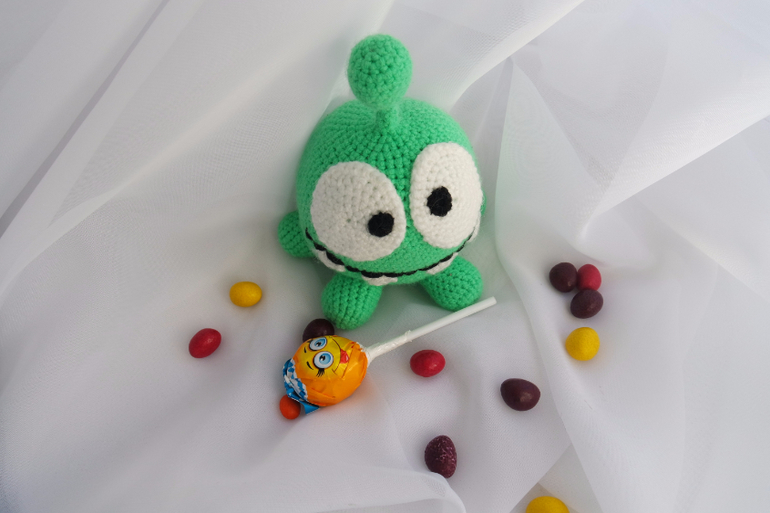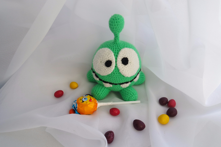 Амигуруми (вязаные игрушки)Моя маленькая дочь просто обожает этого сладкоежку Няма, как она его зовет))) Вот решила порадовать доченьку. Развеселил он всех! еще 2 фото под катом