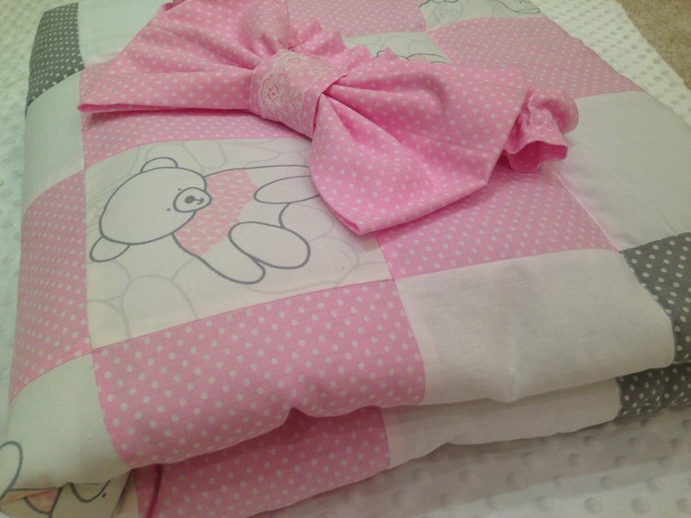 Пэчворк и квилтингДоброй ночи, девчонки! Давно я уже здесь ничего не выкладывала) Сшила сегодня лоскутное одеяло на выписку для девочки. Одеяло зимнее, теплое, размер одеяла 100 на 100, съемный бант на резинке. Материал 100% польский и российский хлопок, внутри синтепон 400 грамм. Завтра дошью к этому одеялу комплект бортиков в кроватку и простынь с подушкой, тоже поделюсь с вами) Под кат еще 5 фото!!!