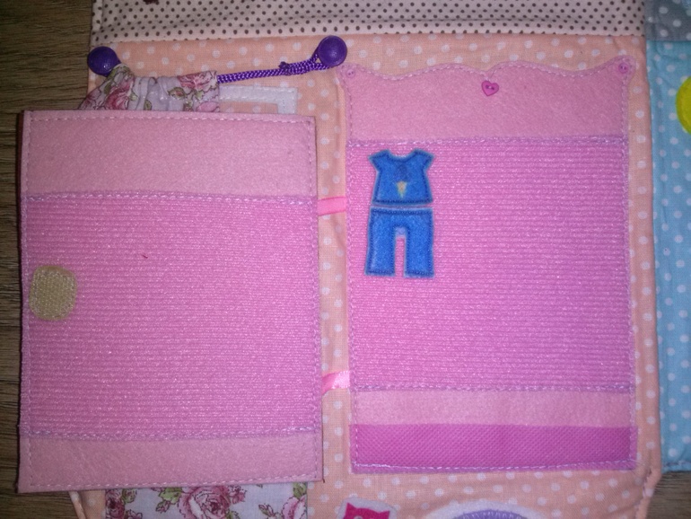 Вместо велкроткани можно пришить полоски липучки или сделать кармашки. Например: