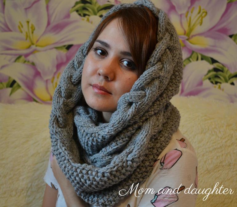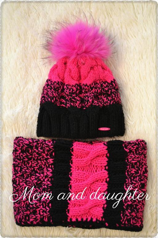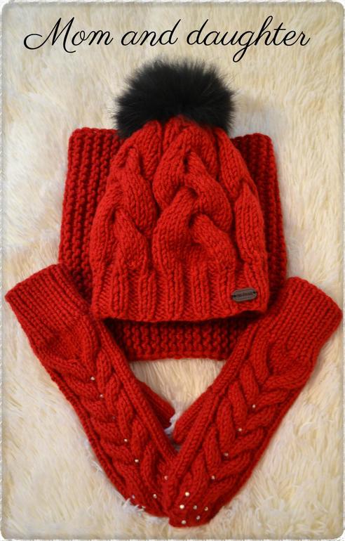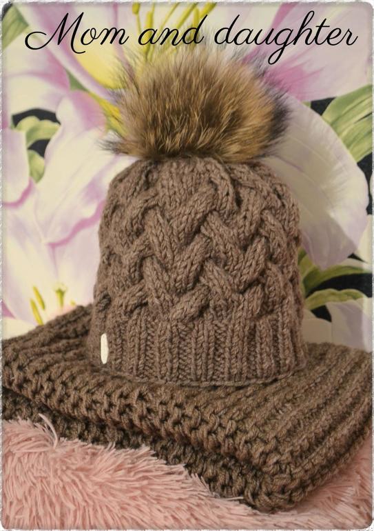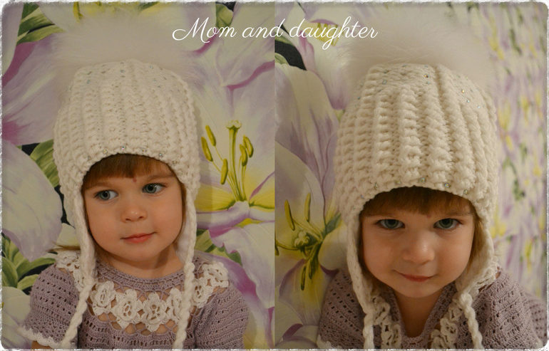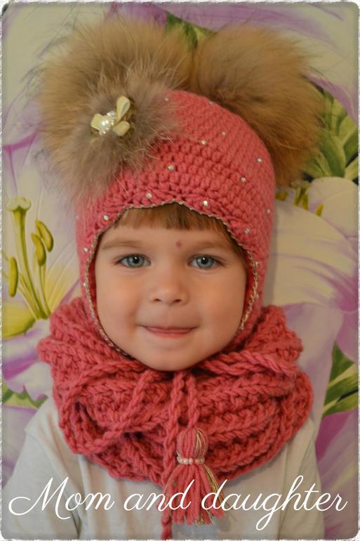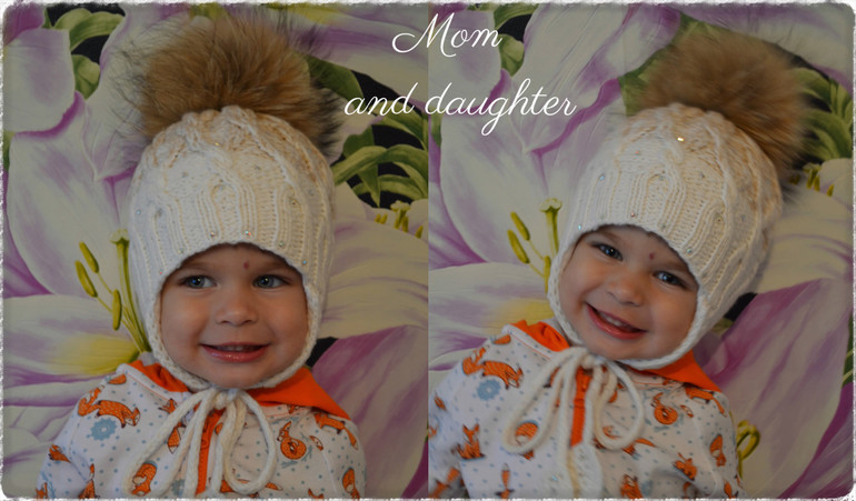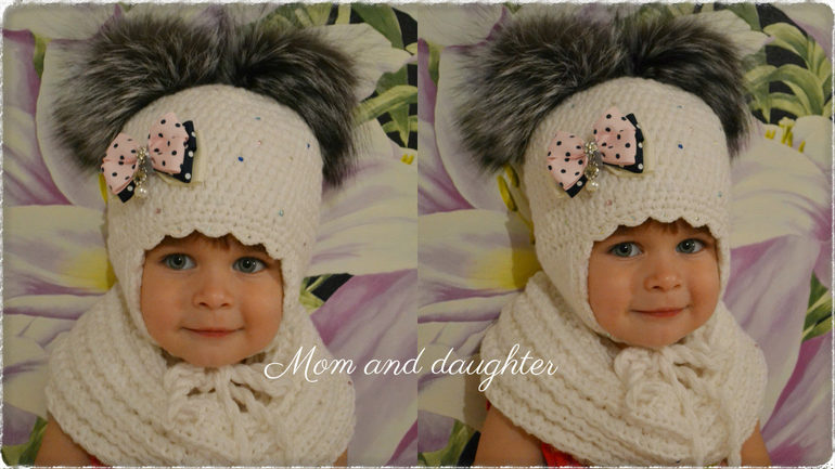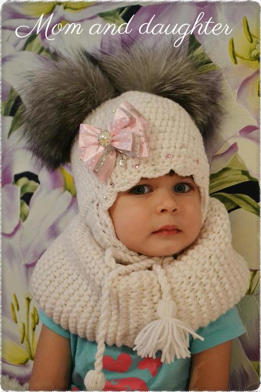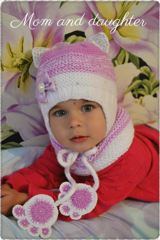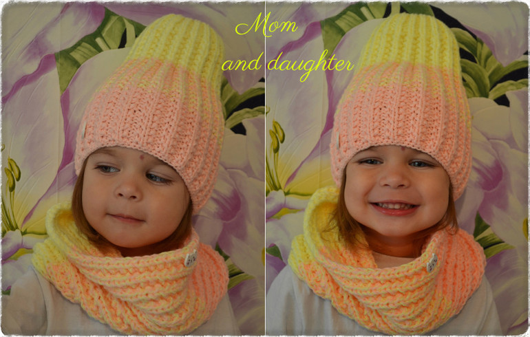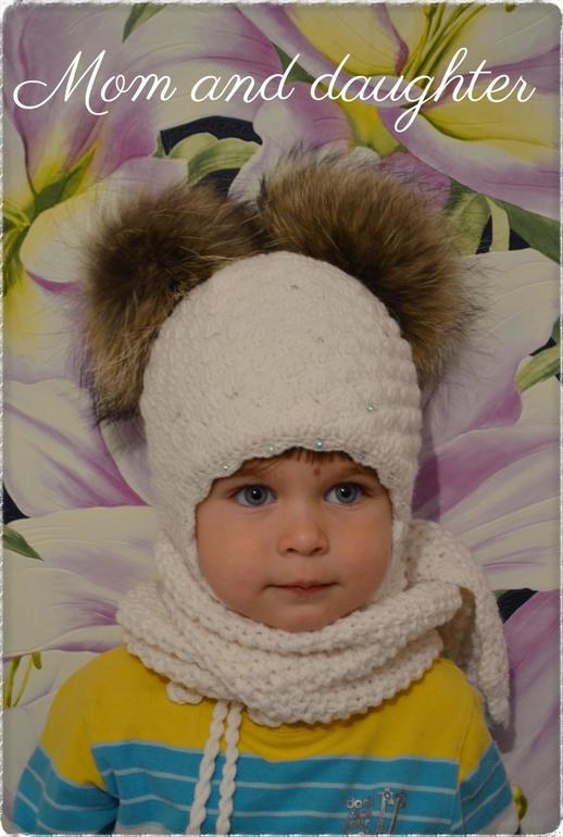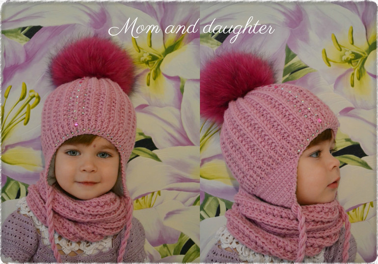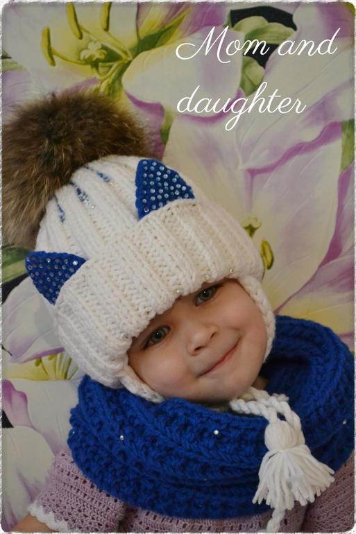 Браво! Дочка модель). Заинтересовала шапочка белая на фоне природы, что за узор? И если можно поделитесь описанием снуда на первых фото.)
