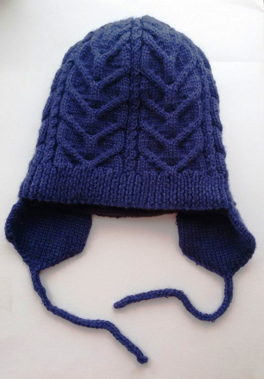 шапка с ушками на вязочках, подклад из флиса, нитки толстые - полушерсть. размер 50