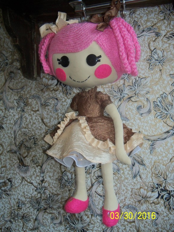 Рост куклы 46 см. От штор кусочек ткани остался, он пошел на платье. Сама кукла из брючной ткани.