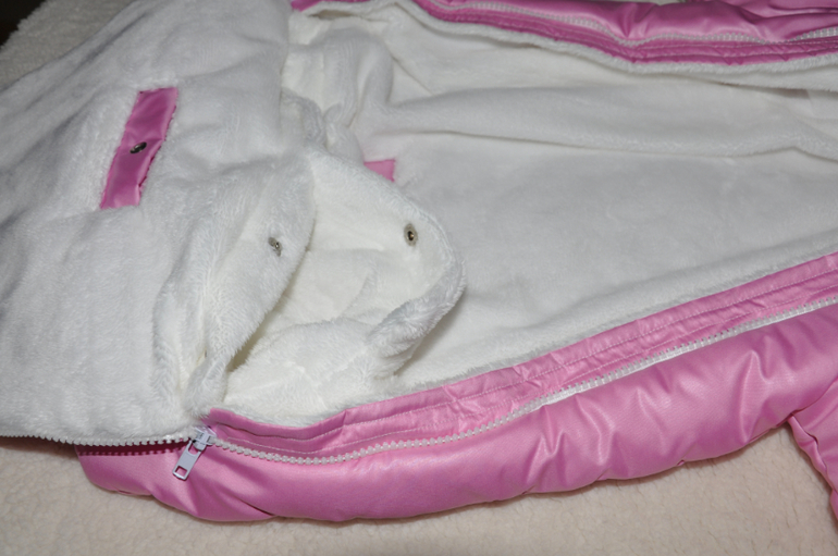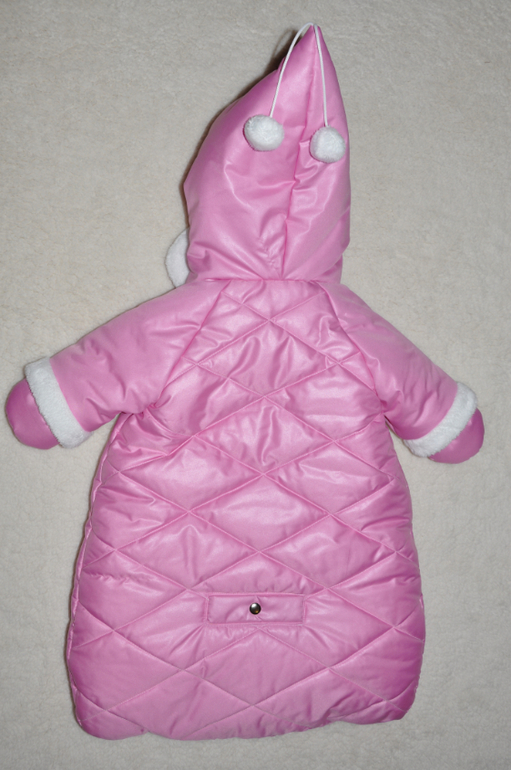 Имеется отверстие на кнопке для пахового ремня, также имеется "двойное дно" в подкладе, регулирующее глубину "мешка". У капюшона в кулиске обычная резинка, не регулируется. При пошиве верхней одежды для своих детей, я пришла к выводу, что регулировка на капе это лишнее, не помню ни разу, чтобы использовала. Поэтому в этом году у меня в кулисках всех капов резинка, обычная или пошире. Свое мнение никому не навязываю, лично мне так удобнее: И шить и при носке.