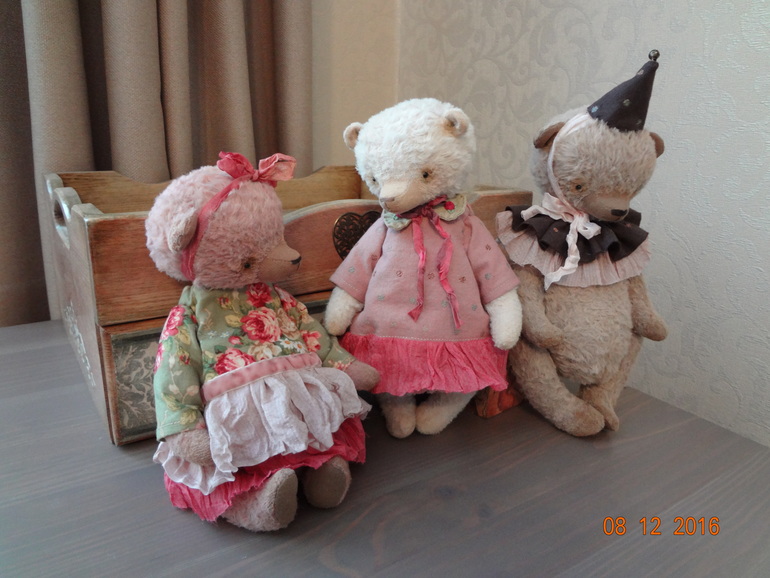 Хорошенькие такие "пожившие" малютки)) обожаю твоих винтажных мишулек, глядя на них кажется, что им есть что рассказать (они хранят в себе какие-то "старые" истории и сказки)))