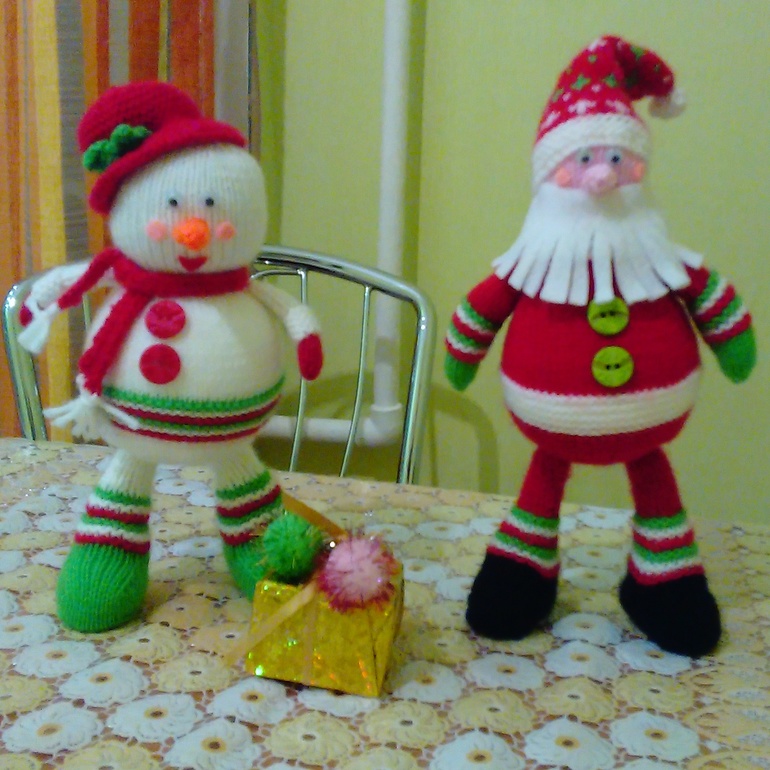 Классные! Как ты с двумя детьми еще вязать успеваешь?! Только у Деда мороза рта не хватает 😊