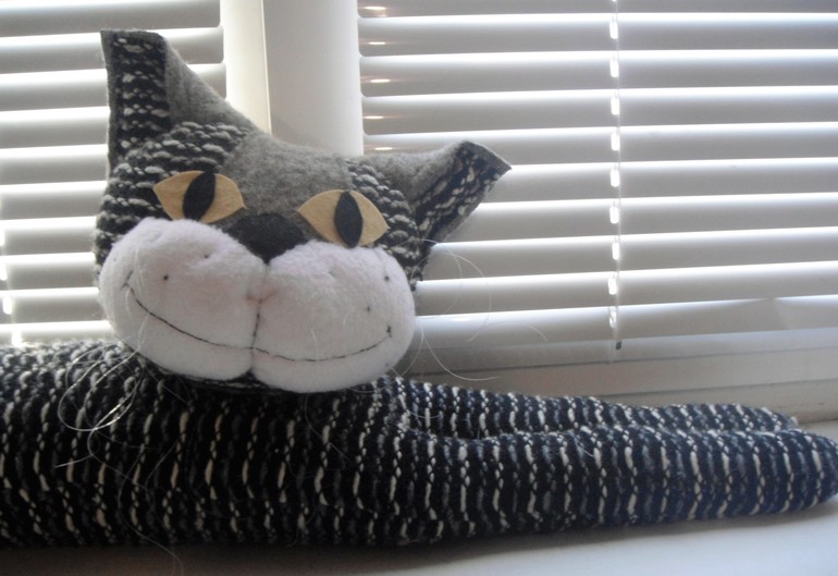 Шитье одежды, выкройки, ремонт одежды, шторы, швейные машины (уже приобретенные)Ещё одна животинка - антисквознячок. Состав тот же: остатки трикотажа, флиса и фетра, в хвостище - проволока, усы - леска.