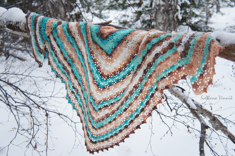 Вязание крючком (РАБОТЫ И СХЕМЫ)Всем добрый вечер. Коротала время в отпуске с крючком. И вот готова очередная шаль. Давно мечтала попробовать в таком сочетании. Связана из двух моточков Alize Angora Gold, 80% акрил, 10% шерсть,10 % мохер. Крючок 3,5