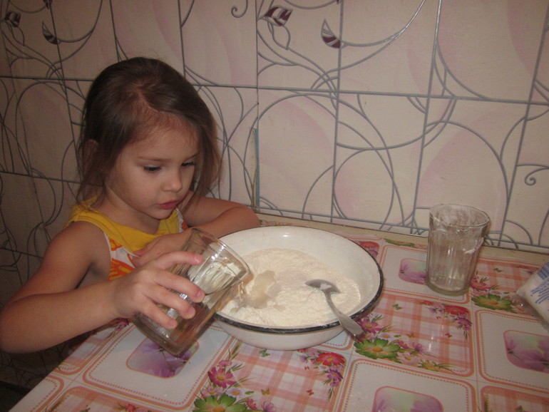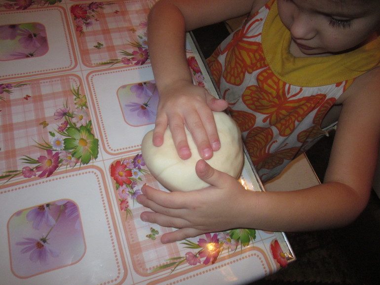 А дома сделали соленое тесто, делала его первый раз(я делала много разных масс для занятий с ребенком, но вот соленое тесто обходила стороной). Дочка во всех процессах активно помогала
