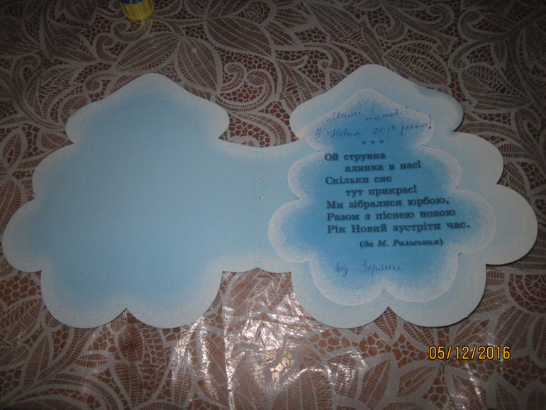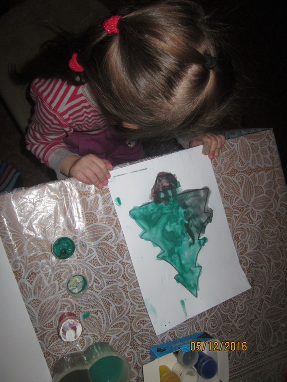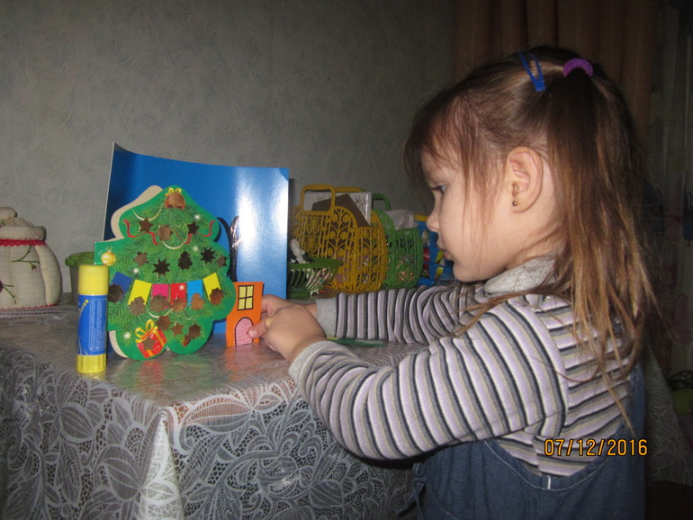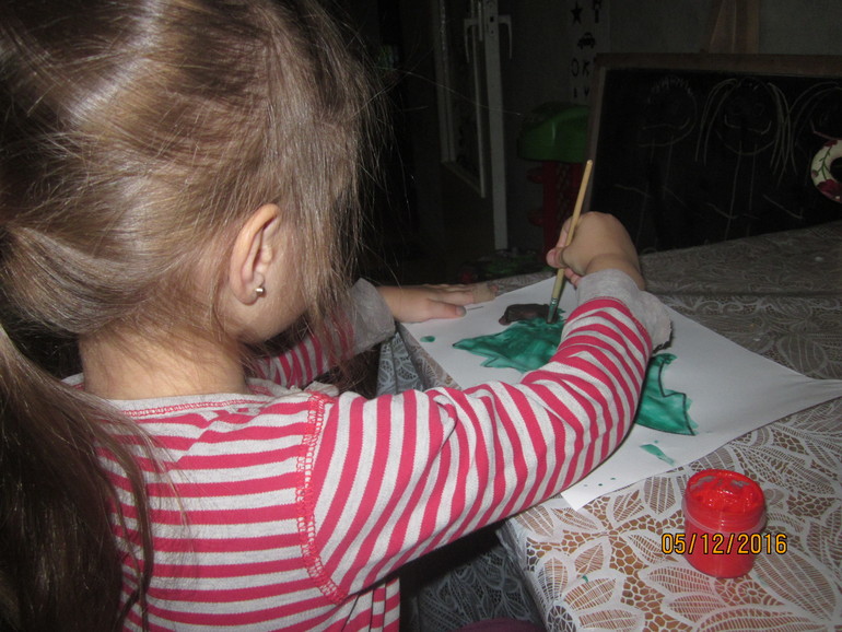 5 декабря - сделать открытку для мамы и папы, раскрасить елочку красками.