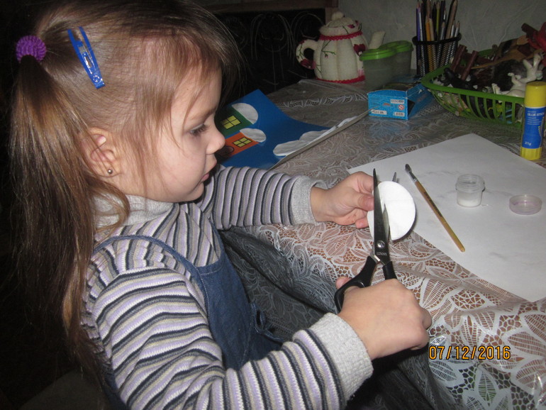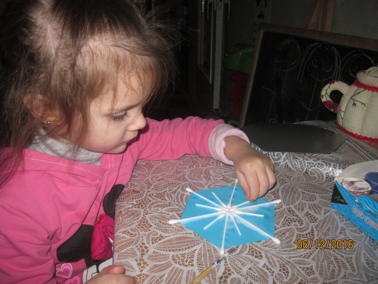 6 декабря - открытки для бабушек, снежинки с ватных палочек.