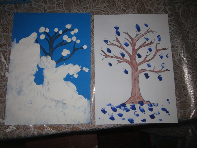 8 декабря - открытки для крестных родителей, нарисовать зимнее дерево пальчиками
