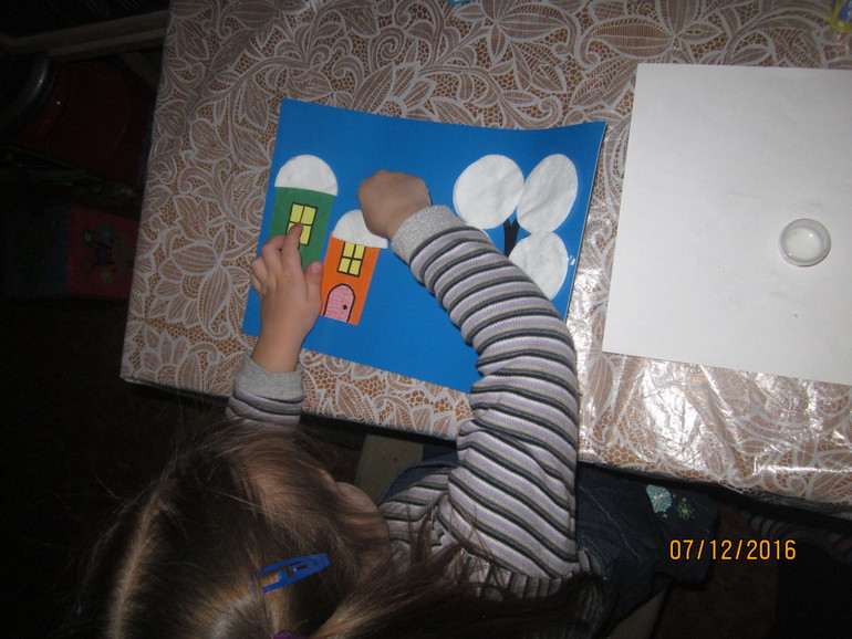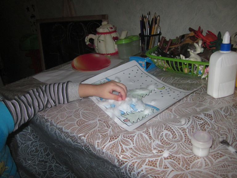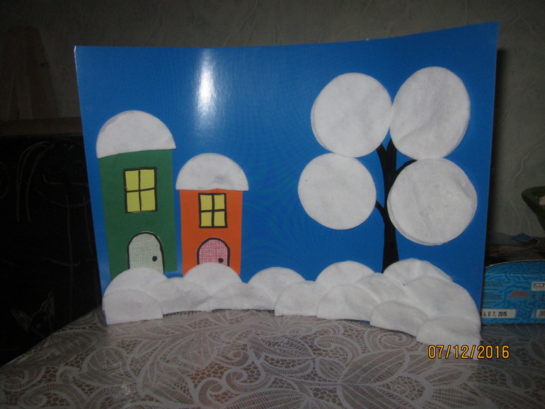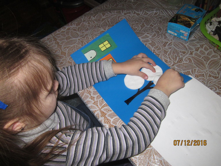 9 декабря - открытка для любимой тети, аппликация с ватой.