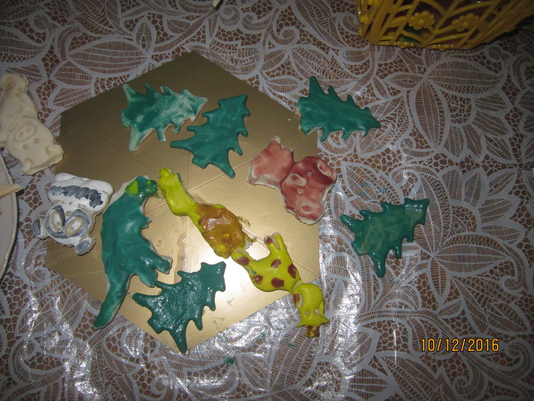Когда фигурки испеклись и остыли мы начали их раскрашивать