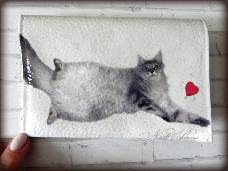 ДекупажЗаказы бывают разными. Очень не люблю повторять свои работы, но просто обожаю необычные заказы. Когда приходится поломать голову над исполнением. Этот отнесу к их числу. На обложке должен был красоваться любимый питомец, да еще и с сердечком на палочке в лапах. Не думала, что у меня получится сделать подходящую картинку из предоставленного фото.