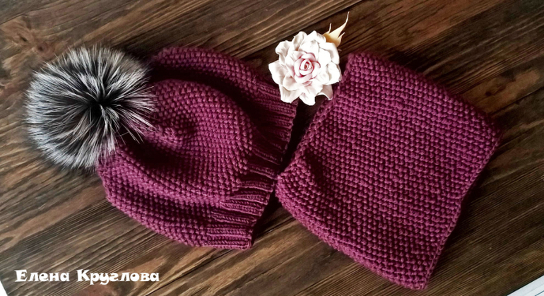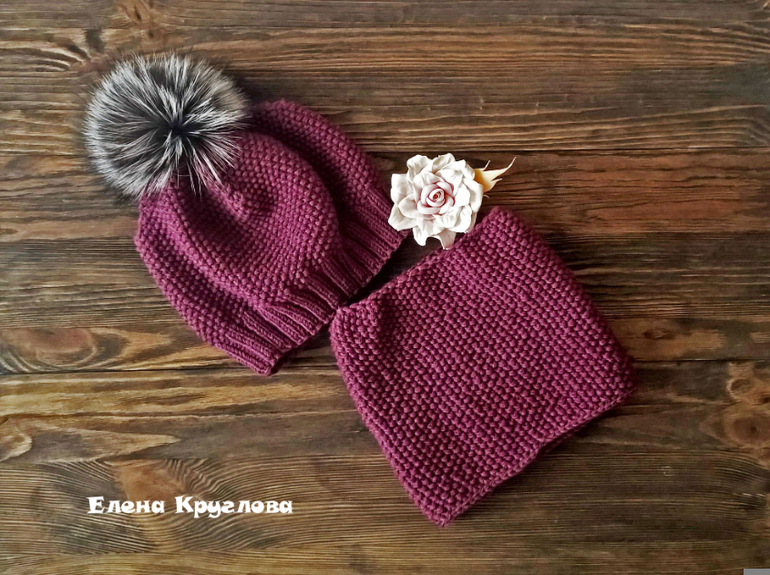 Вязание спицамиВот такой комплект связался у меня для обмена с Катюша-Ватруша. Пряжа Drops baby merino 100% шерсть, очень мягкая,совершенно не колется. Помпон из чернобурки. Под кат еще 1 фото