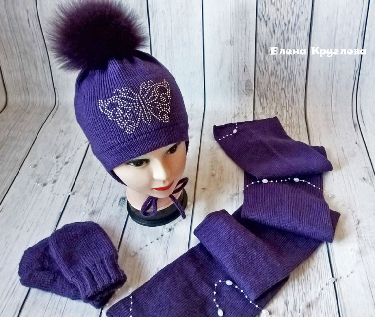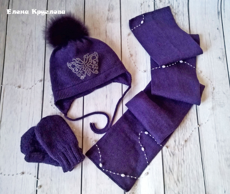 Машинная вязка (РАБОТЫ И СХЕМЫ)Комплект связан из полушерстяной пряжи и состоит из шапочки на флисе, шарфика и двойных варежек. Под кат 3 фото