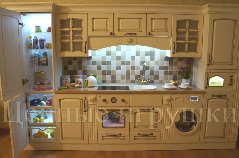 Работа с деревомВсем здравствуйте. Хочу похвастаться новой игрушечной кухней. Кухню делали долго. Сил и времени потрачено было много, но результат превзошел все наши ожидания. Игрушка получилась мега красивая и милая. Водяной знак не является рекламой, а защищает наши авторские права, т.к. к сожалению фото воруют.