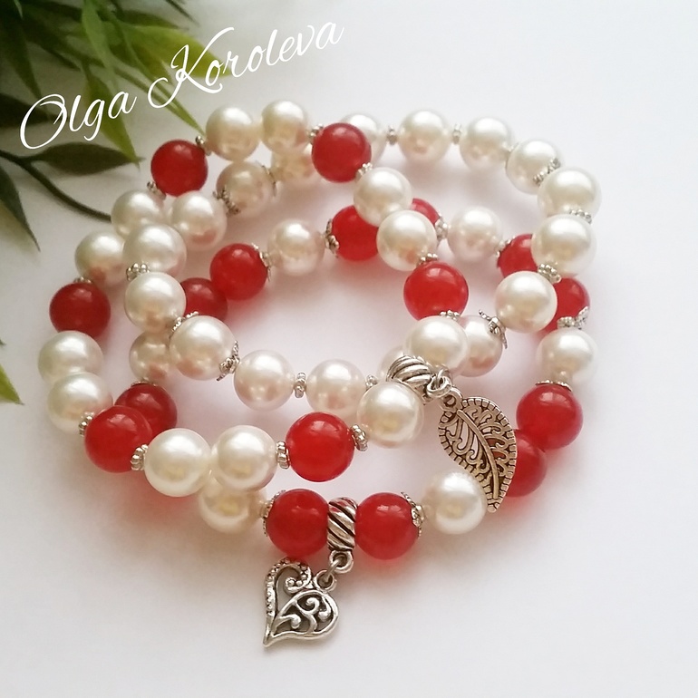 Изящный и яркий комплект из тонированного агата и жемчуга Майорка. Браслеты собраны на двойную резинку.