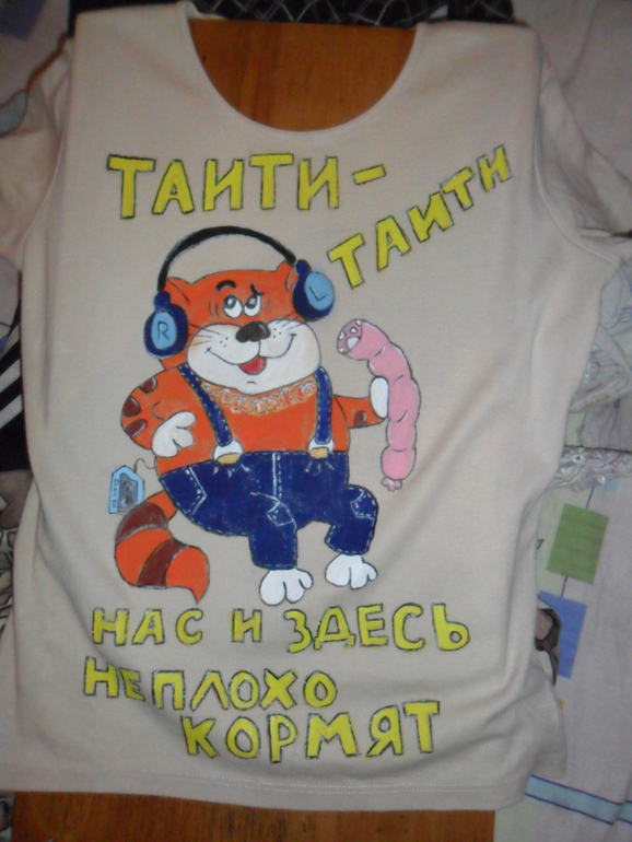 Роспись по ткани, батика к этому виду творчества меня привел несчастный случай, я сломала ногу и самостоятельно передвигаться не могла, а так хотелось творить... и видя мои страдания муж подарил мне краски по ткани...в ход пошли сначала домашние однотонные футболки, потом друзья и родственники стали приносить свои... результаты ниже... надеюсь не утомила фото (много фото)