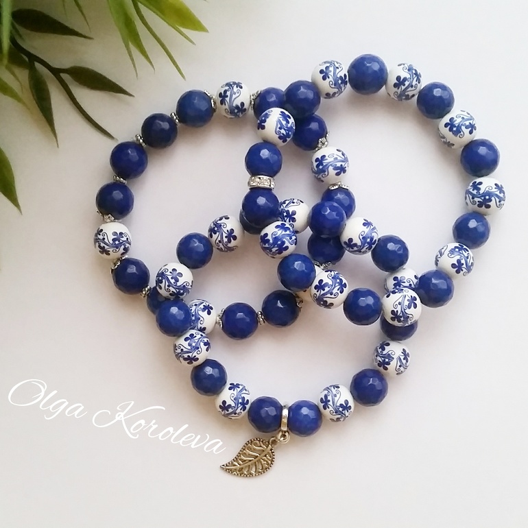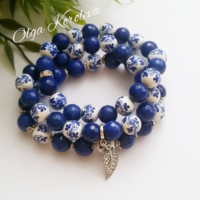 Моя любимая гжель❤ Зимой всегда комплекты в этом стиле. Использованы керамические бусины и тонированный синий агат с огранкой.