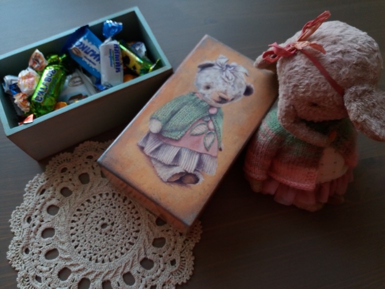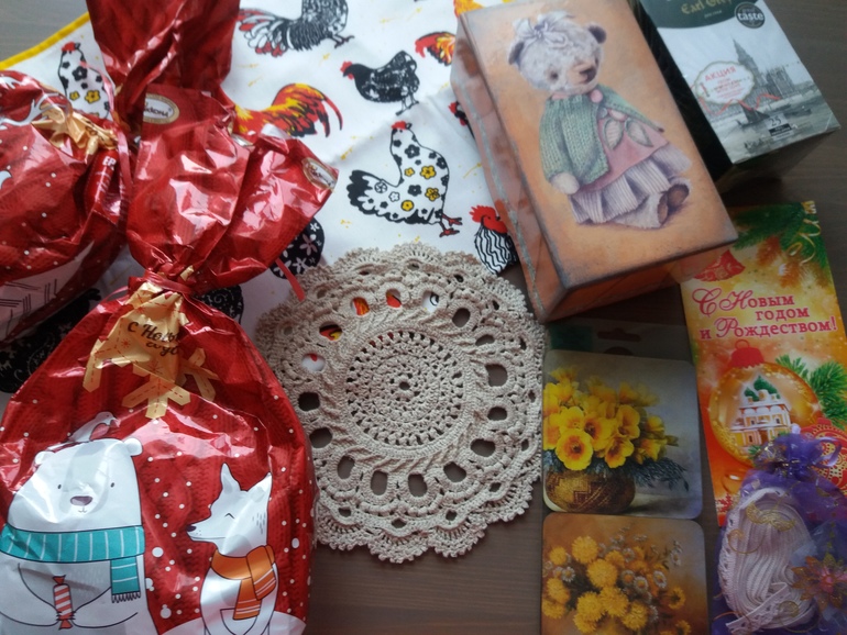 Обмены подарками, материалами для рукоделия (хвастики)Поучила сегодня столько подарков от Натальи))).Наталья сделала короб для конфет с моим мишкой,теперь будем хранить в нём конфетки,правла они у нас долго не задерживаются.... Ещё столько всего,вкусные подарки для деток,салфетка,как я хотела))).Спасибо огромное Наташенька)))).