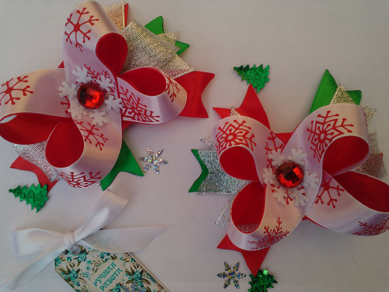 Цветы из ткани и форма. Канзаши. Украшения для волос.Мои новые работы для девочек.Под катом больше 5 фото.Новогодние заколочки.