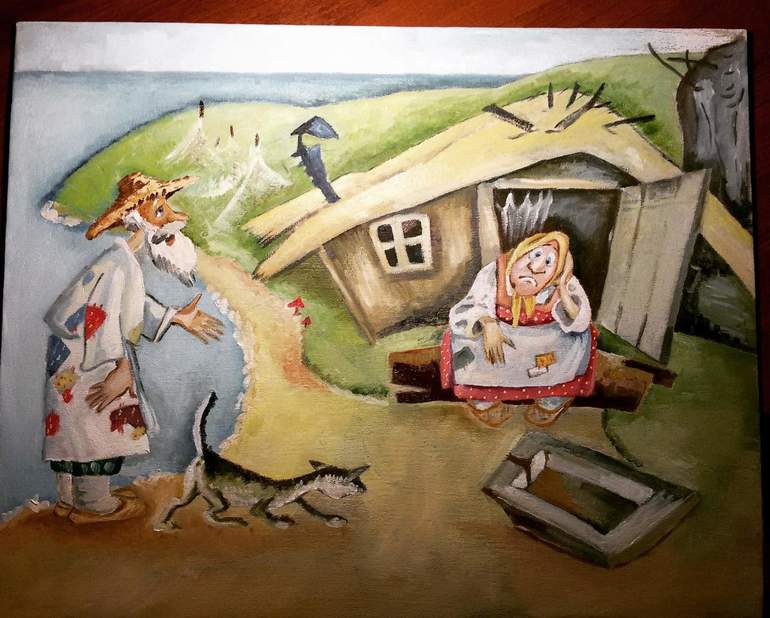 Живопись, точечная росписьЗдравствуйте девочки, хочу показать вам работы маслом. Одна двухфигурная аудиторная, а вторая это в детский сад сыну -сюжет по мотивам сказки Пушкина.
