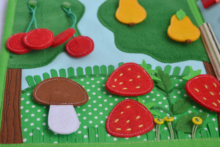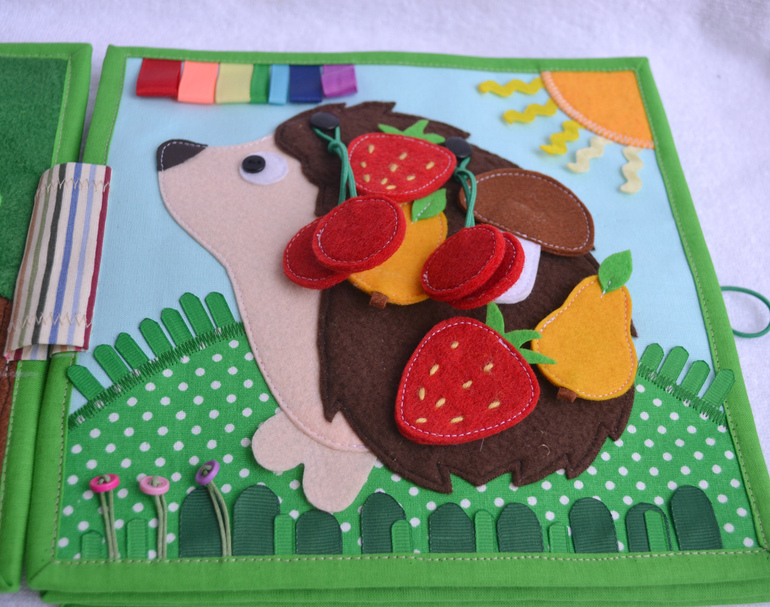 Сшила еще одну развивающую книжечку. Размер 23*23 см. Съемных деталек насчитала-43 шт. Под cut много! фото! Приятного просмотра и хорошего настроения!