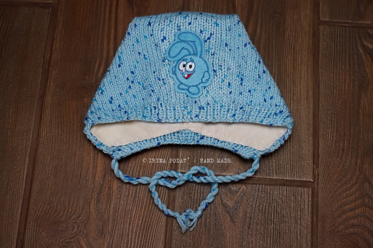 Вязание спицамиСвязала давно, забыла показать. Чепчик связан из детского акрила от ярн арт. Украшен покупной термо аппликацией. Утеплен тканюшкой велюровой (из-за отсутствия флиса дома).