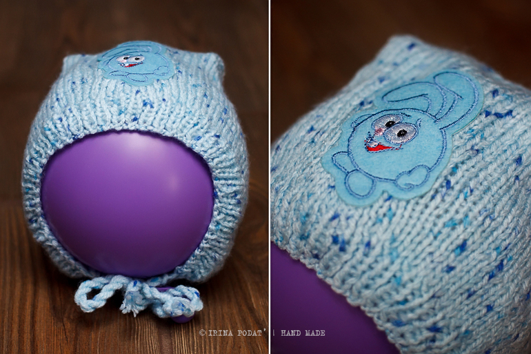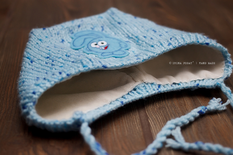 Связала давно, забыла показать. Чепчик связан из детского акрила от ярн арт. Украшен покупной термо аппликацией. Утеплен тканюшкой велюровой (из-за отсутствия флиса дома).