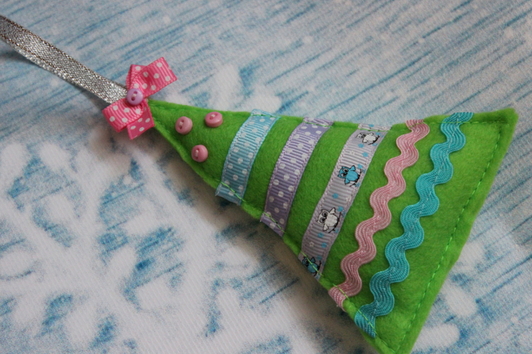 Вчера в дет.саду дали задание принести игрушку на ёлку, сделанную своими руками. Загорелось мне для пробы сделать ёлочку из фетра, а где одна, там и вторая получилась. В итоге, когда ёлочки были готовы- я пожадничала их в дет.сад отдавать. Ладно бы на ёлку в группу, а то ведь на улицу, сопрут ведь.... Прям тааааак жалко стало (хотя я не жадина). В общем дочка ушла с конфетами из гофрированной бумаги, а ёлочки остались у нас дома