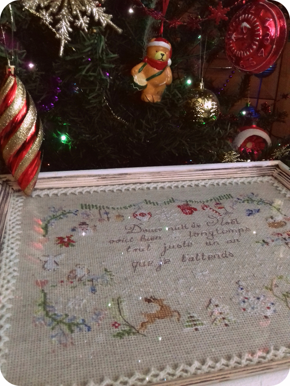 На льняной Аиде получилось ничуть не хуже, чем на равномерке! Изящество дизайна сохранилось. И оформлено красиво!