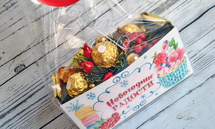 композиция из конфет на коробке конфет.