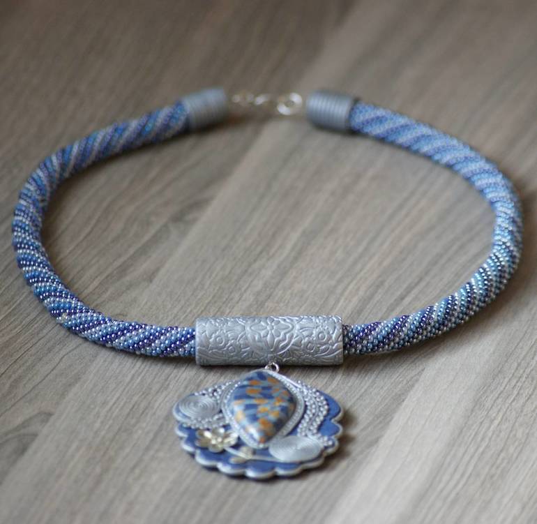 Бисер. Бисероплетение. Украшения из бисера.Всем привет! Совсем недавно начала я осваивать новый вид рукоделия - вязание жгутов. Мне очень понравилось. Занятие интересное и увлекательное. Вот решила похвастаться своим первым жгутом из бисера с кулоном из полимерной глины.
