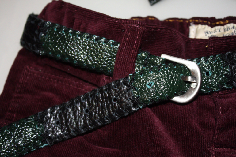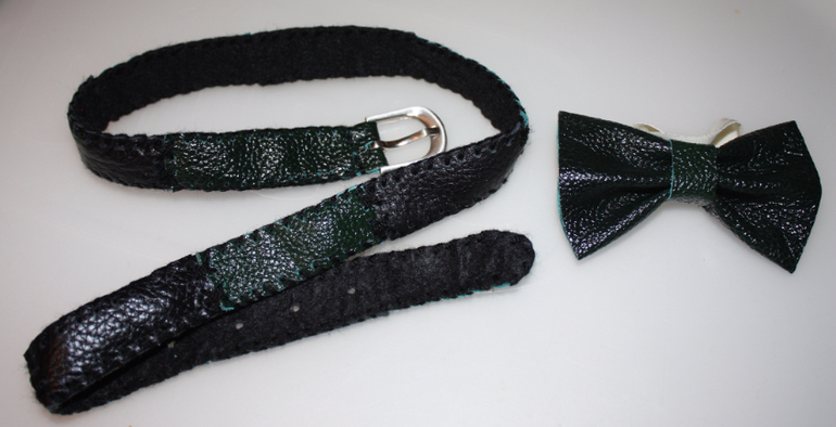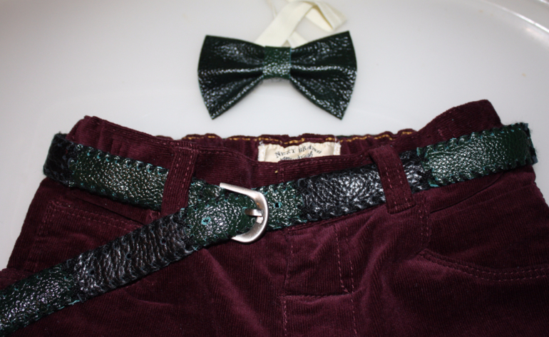 Изделия из кожиВсе как обычно у меня бывает.. Сегодня утренник был у сына, а вчера вечером мне захотелось отправить сына одетым не в том, в чем планировала. У нас в саду мальчикам принято приходить классически.. темный низ и белый верх. Обычно это черные брюки и белая рубашка. Но вчера вечером захотелось отправить его брюках сливового цвета с кожаным ремнем и бабочкой. Ну и конечно же маме нужно заморочиться и сделать ремень с бабочкой самой. Вырезала прямоугольники, дыроколом сделала дырочки, пришила на основу из фетра, фурнитуру отрезала от своего ремня и все готово ))))) Делала микс черного и темно-изумрудного цвета. Детали под КАТом: