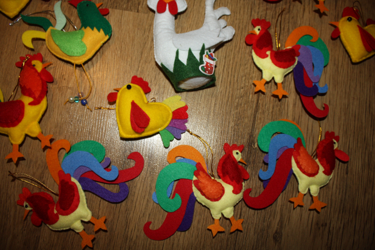 Обмены подарками, материалами для рукоделия (хвастики)Получила я посылочку от Анны Анна Камбарова , но все руки не доходят выложить отчет. Исправляюсь ))) Получили мы просто армию фетровых петушков и цыплят на елочку. Уйма труда, терпения и они получились очень волшебными. Швы все ровные, цвета яркие. Ребенок был в восторге. (были еще 2 цыпленка, но они уже куда-то ускакали :))