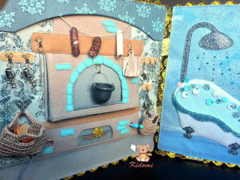 Хранить все съемные детали можно во вместительном кармане на задней части обложки книги.