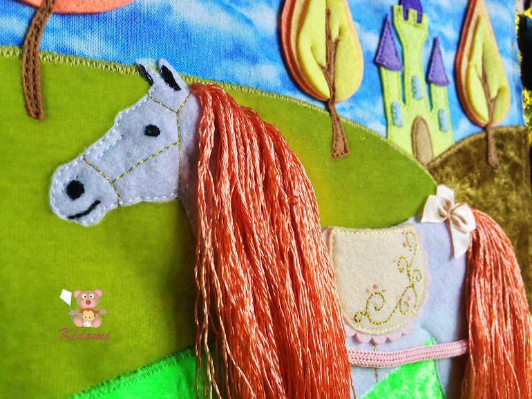 Лошадь выполнена в виде кармана, можно посадить всадника. Гриву и хвост можно расчесывать и заплетать в косичку.