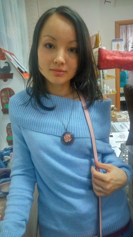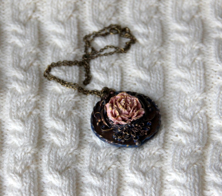 Соседствовала со мной чудесная девушка Анастасия Петрова, она занимается изготовлением украшений из полимерной глины. Благодаря ей у меня появился вот этот кулон: