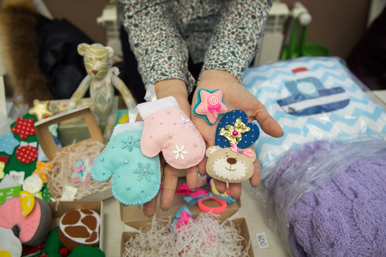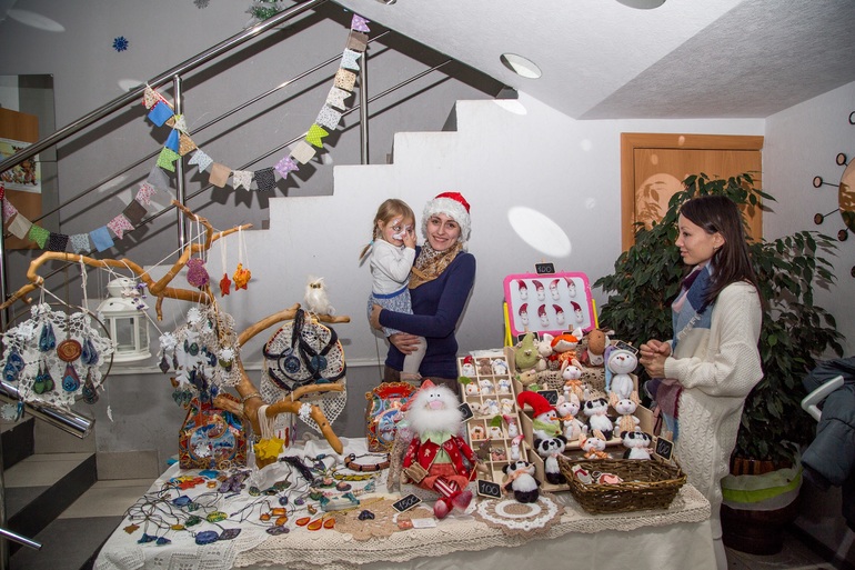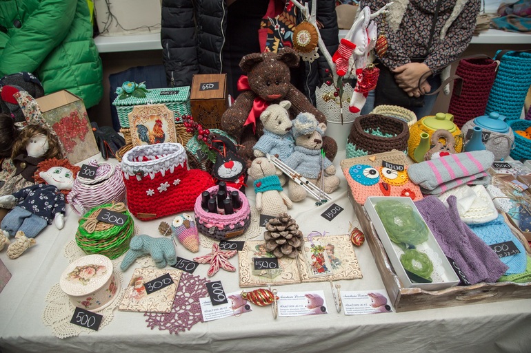 Ярмарка Арт-Базар проходила в Театре Город (в фойе), было холодновато из-за постоянно открывающихся дверей. Поэтому только куртка, ботинки на меху и чай, который бесплатно и любезно наливали мастерам, спасали меня от переохлаждения.